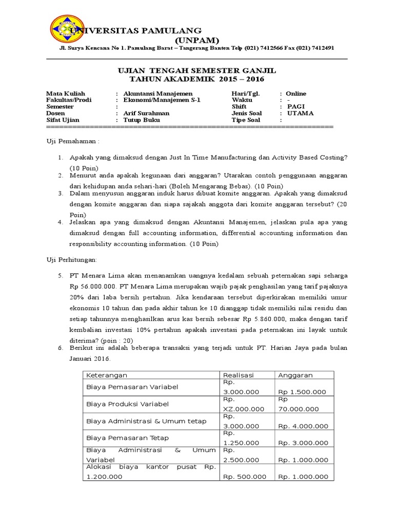 Soal Dan Jawaban Uts Akuntansi Biaya / Uts Akuntansi Biaya Bank Soal Manajemen Unair : Check spelling or type a new query.. We did not find results for: Check spelling or type a new query. Soal dan jawaban uts akuntansi biaya. Maybe you would like to learn more about one of these?