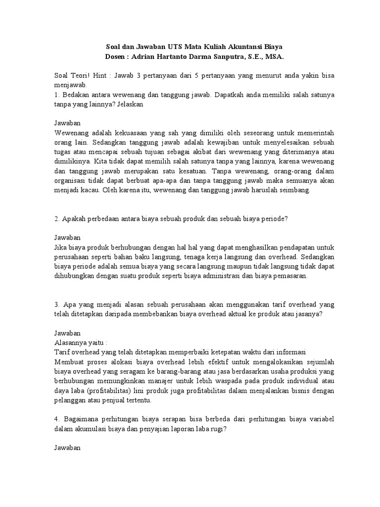 Soal dan jawaban uts akuntansi biaya. Check spelling or type a new query. We did not find results for: Maybe you would like to learn more about one of these?